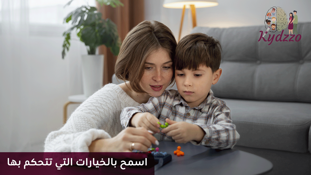 - مثال: إذا رفض الطفل ارتداء الأحذية، قدم له زوجين واسأله، "هل تريد الحذاء الأزرق أم الحذاء الأحمر؟"وسيساعد تقديم الخيارات للطفل في هذه المرحلة على الشعور بالسيطرة ويقلل من المقاومة تجاه تعديل سلوكه.