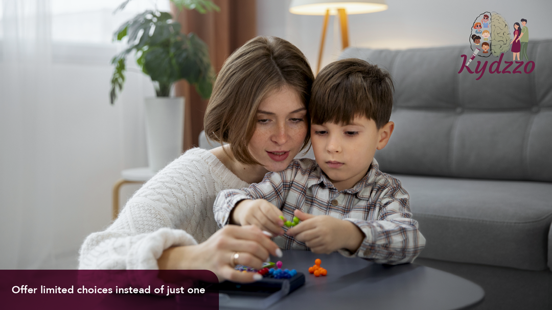 - Allow choices that they can control: If your child refuses to wear shoes, offer them a pair and ask, "Do you want the blue shoes or the red shoes?" Giving children choices at this stage helps them feel in control and reduces resistance to changing their behavior.